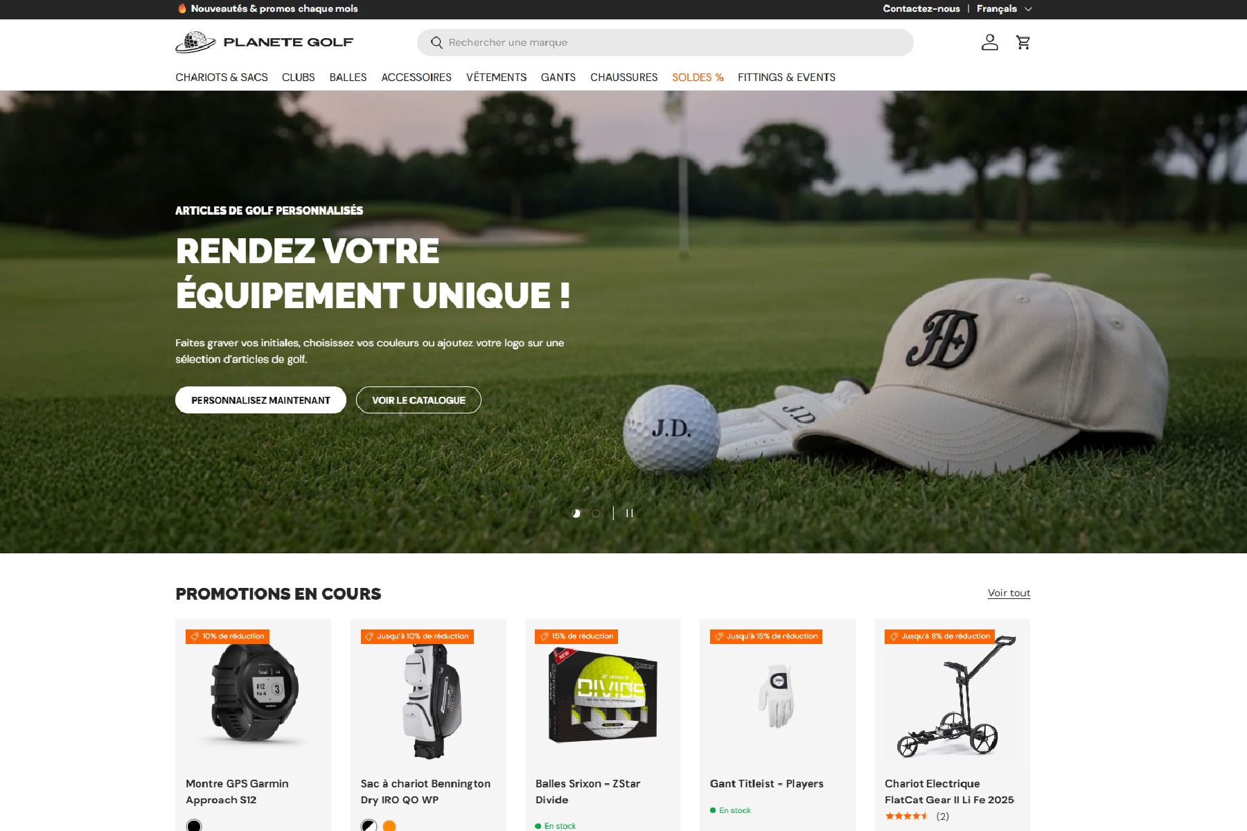 Les objectifs étaient d’augmenter les performances e-commerce, d’optimiser le tunnel d’achat, de structurer le SEO et de créer une plateforme évolutive. La refonte devait également permettre une meilleure mise en avant des produits, des promotions et des services proposés par Planète Golf.
