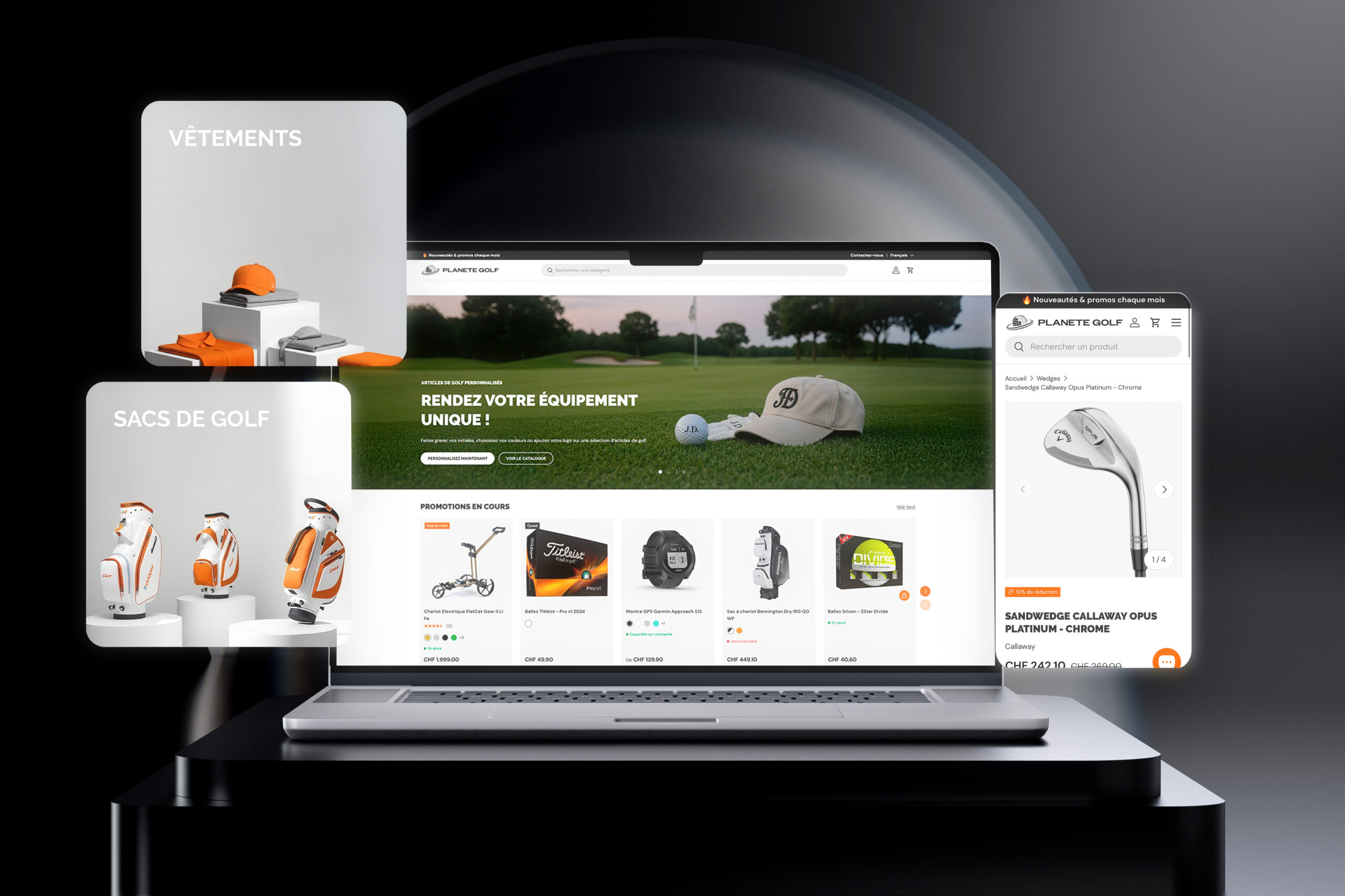 Planète Golf souhaitait moderniser sa plateforme afin d’améliorer l’expérience utilisateur, renforcer la performance mobile et développer les ventes en ligne. L’ancien site ne permettait plus d’accompagner efficacement la croissance digitale de la marque ni de proposer des produits personnalisables de manière fluide.